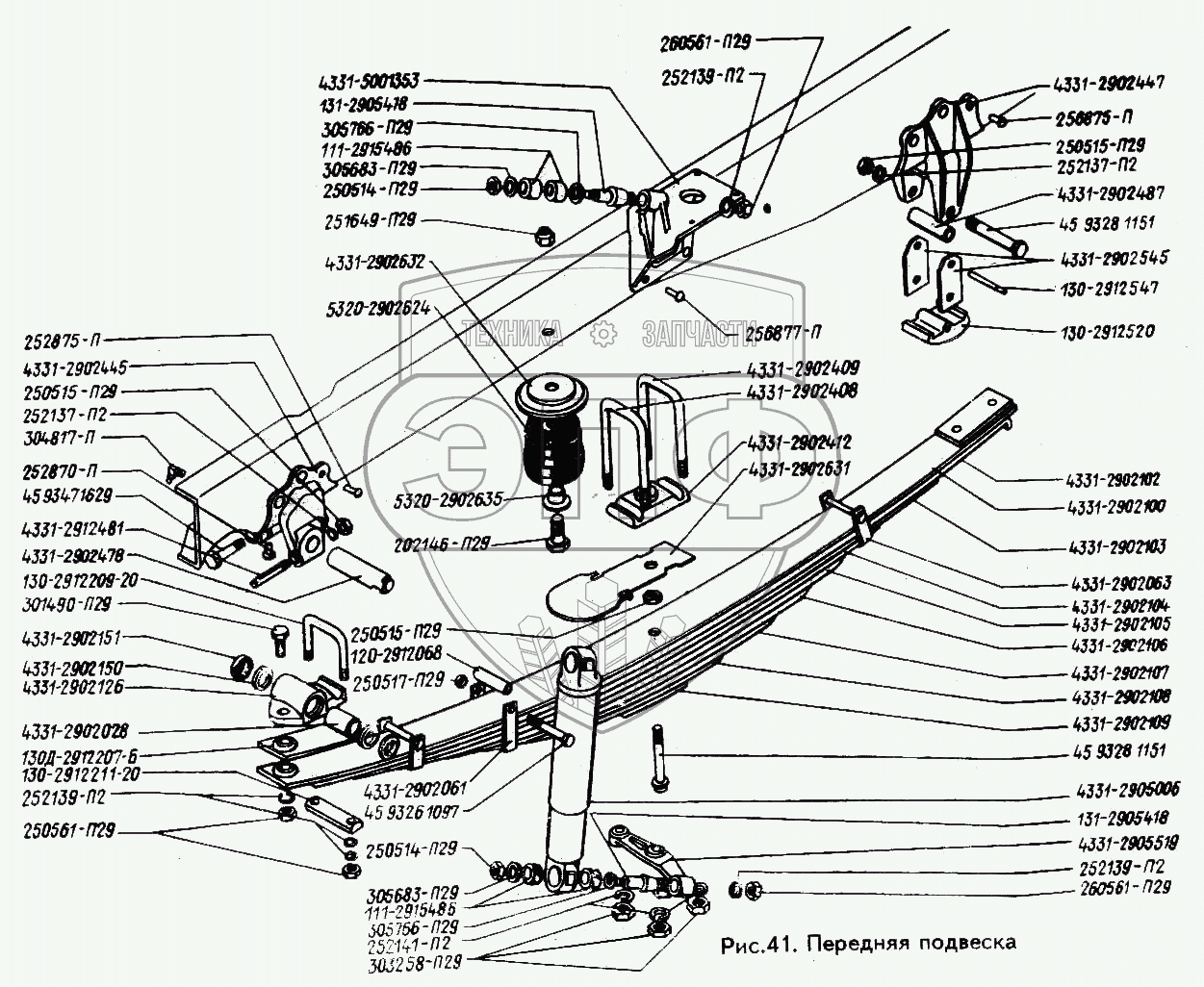 Каталог запасных частей к технике: ЗИЛ-433100. Передняя подвеска