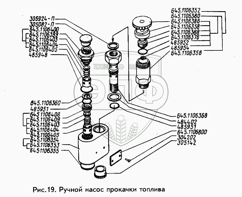 Каталог запасных частей к технике: ЗИЛ-433100. Ручной насос прокачки топлива