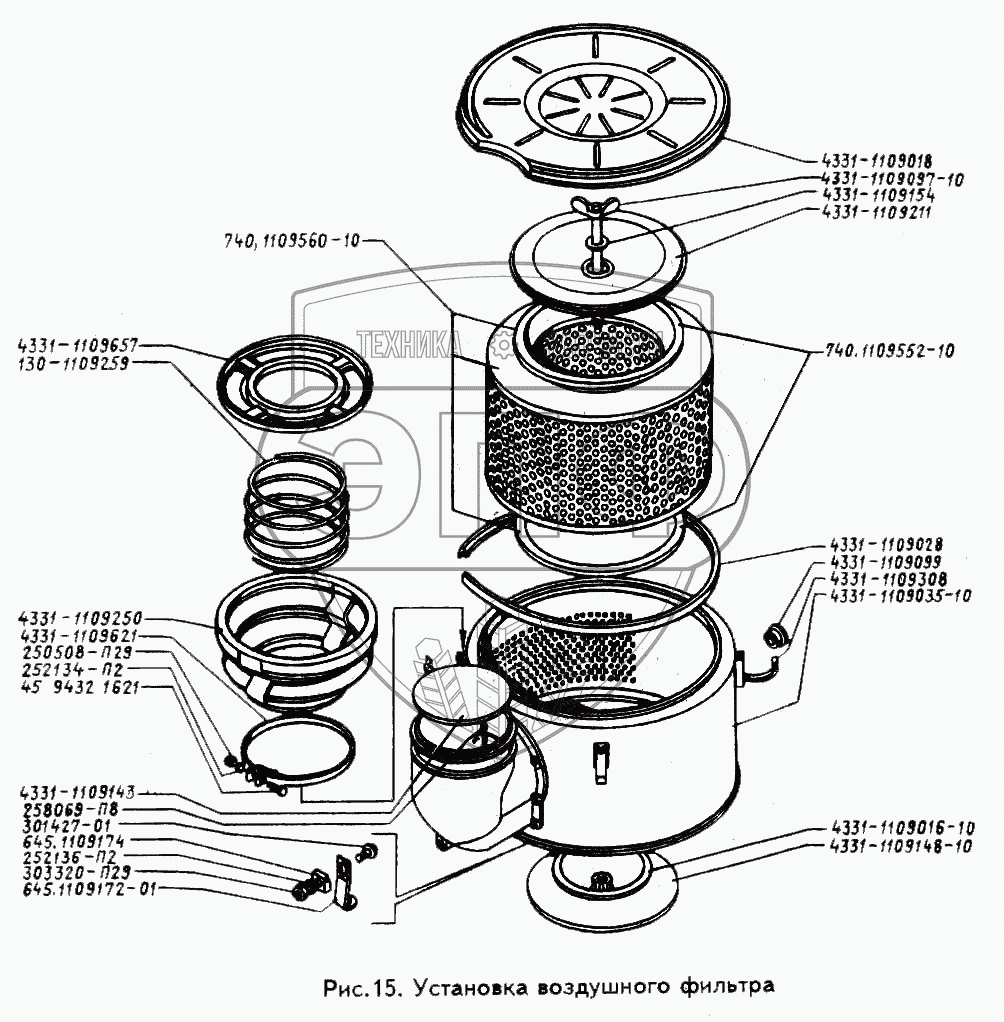 Каталог запасных частей к технике: ЗИЛ-433100. Установка воздушного фильтра