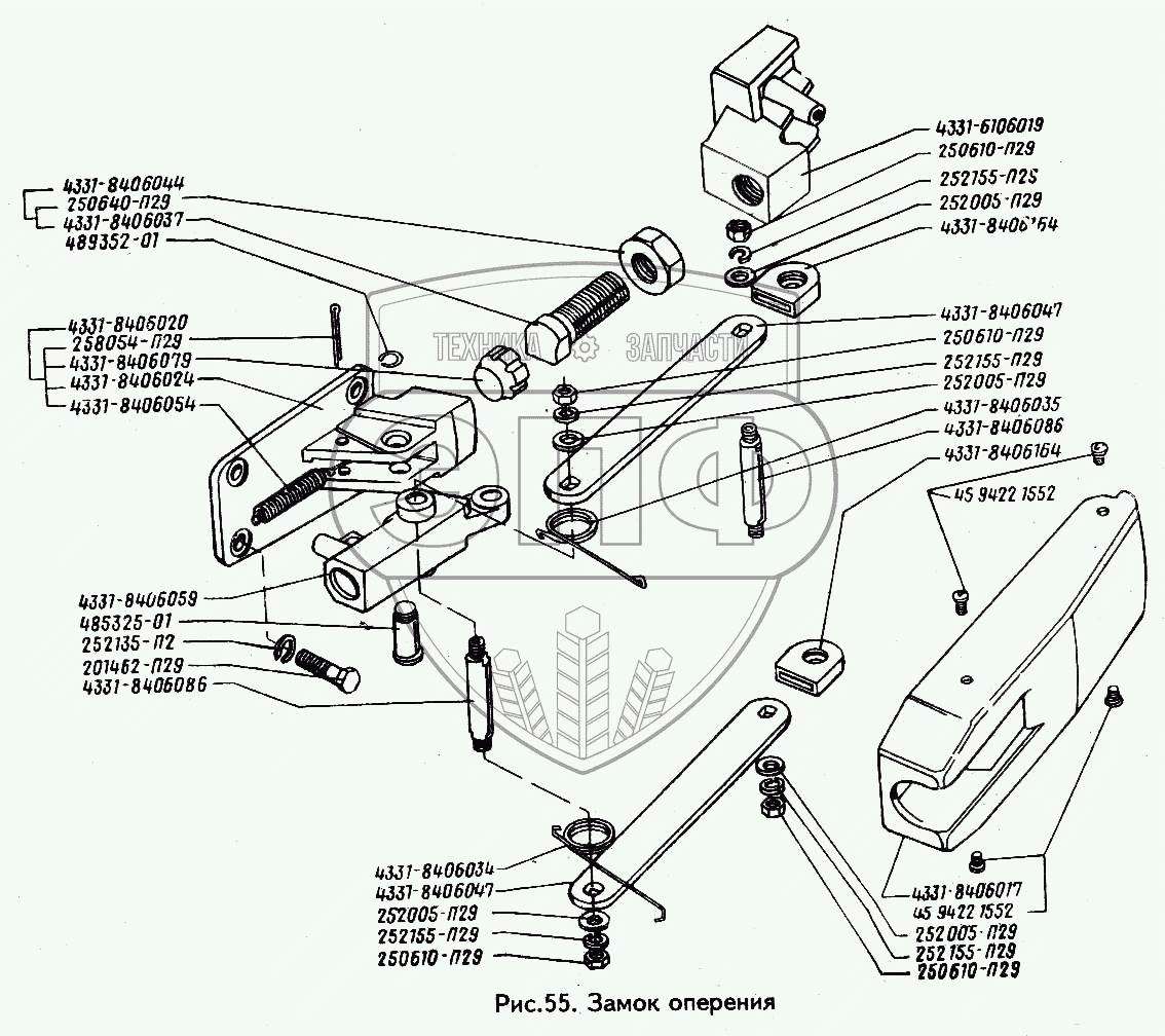 Каталог запасных частей к технике: ЗИЛ-433100. Замок оперения