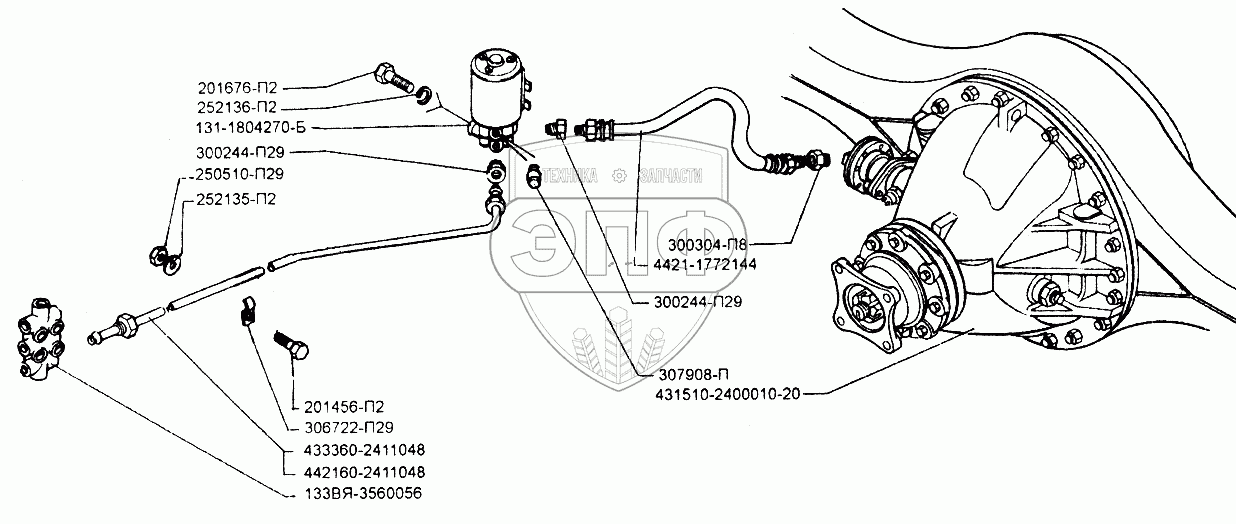 Каталог запасных частей к технике: ЗИЛ-433110. Привод блокировки дифференциала