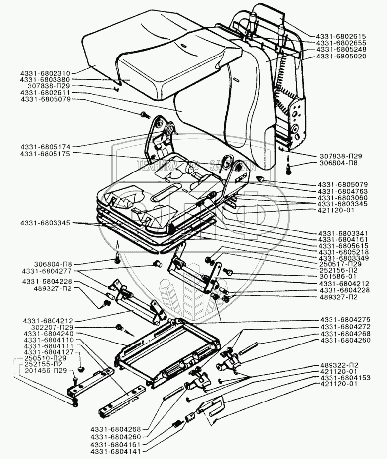 Каталог запасных частей к технике: ЗИЛ-433110. Сиденье водителя