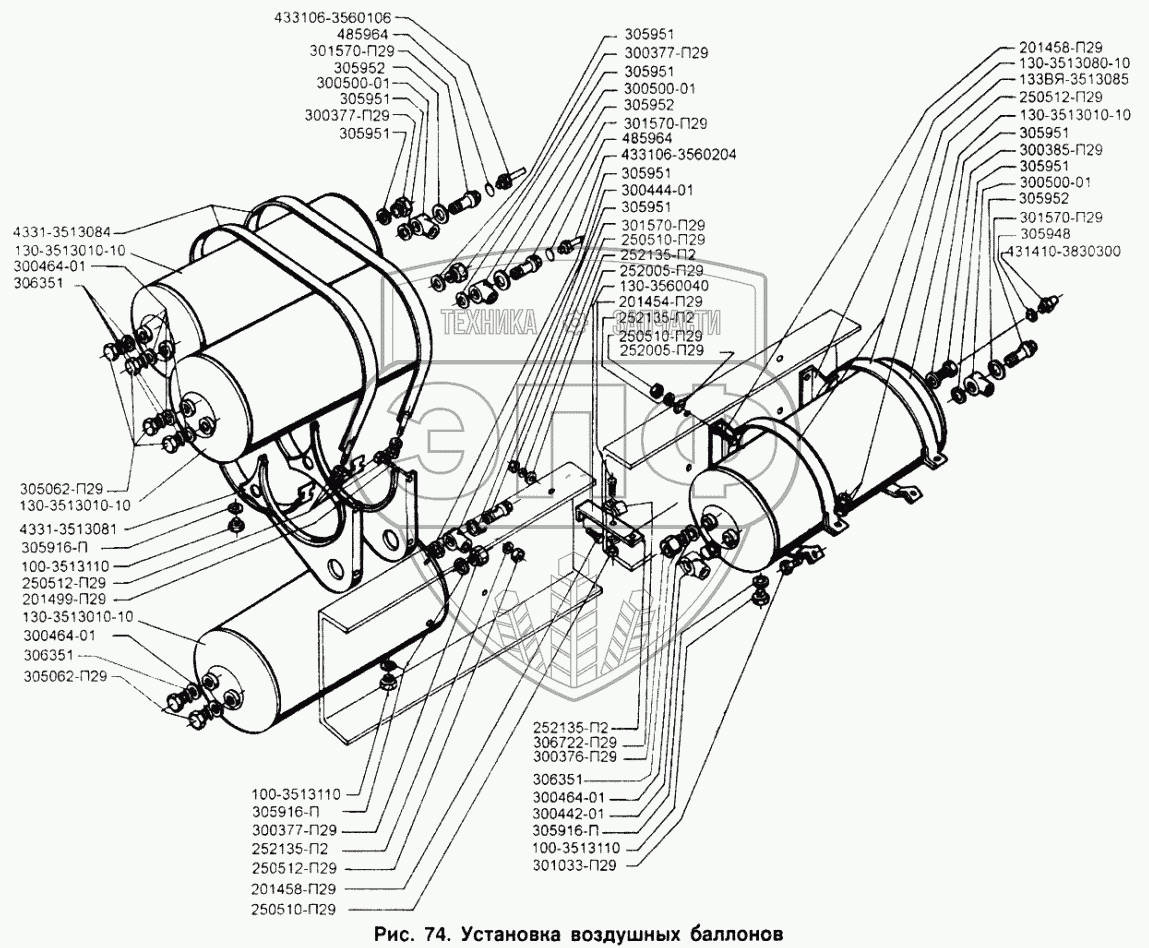 Каталог запасных частей к технике: ЗИЛ-433110. Установка воздушных баллонов
