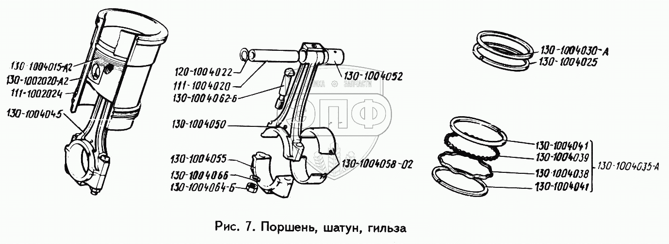Каталог запасных частей к технике: ЗИЛ-494560. Поршень, шатун, гильза