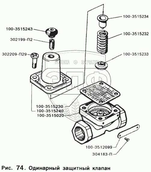 Каталог запасных частей к технике: ЗИЛ-5301. Одинарный защитный клапан
