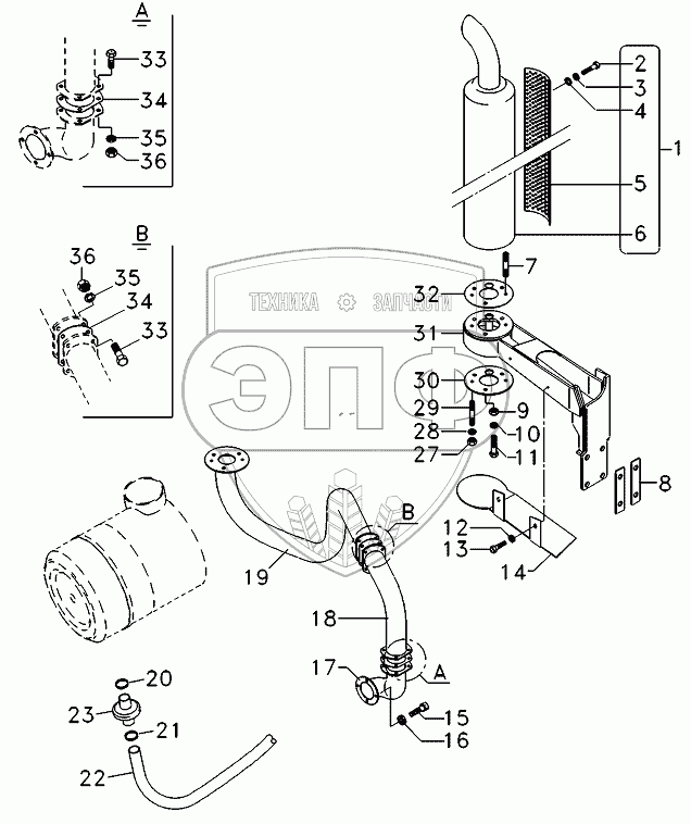 Каталог запасных частей к технике: AGCO Allis AA6.190. Exhaust, with cab