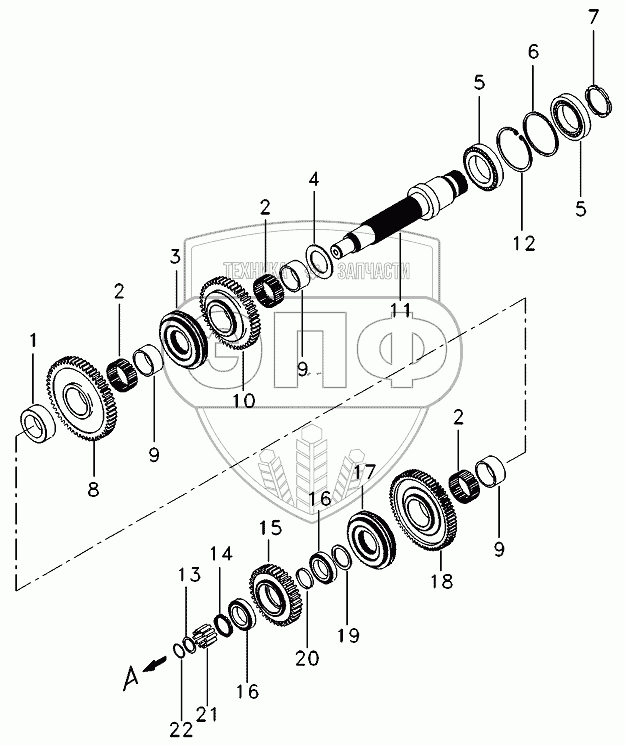 Каталог запасных частей к технике: AGCO Allis AA6.190. Transmission, Out Put Shaft