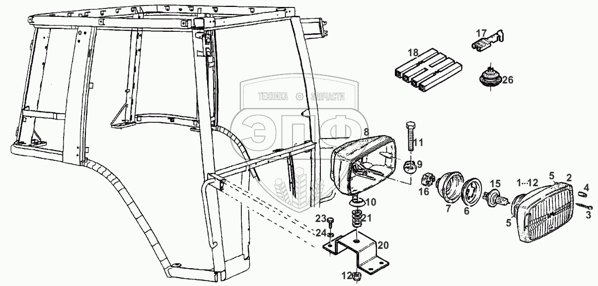 Каталог запасных частей к технике: AGCO Fendt-524 (Xylon) часть3. ADDITIONAL LIGHTING