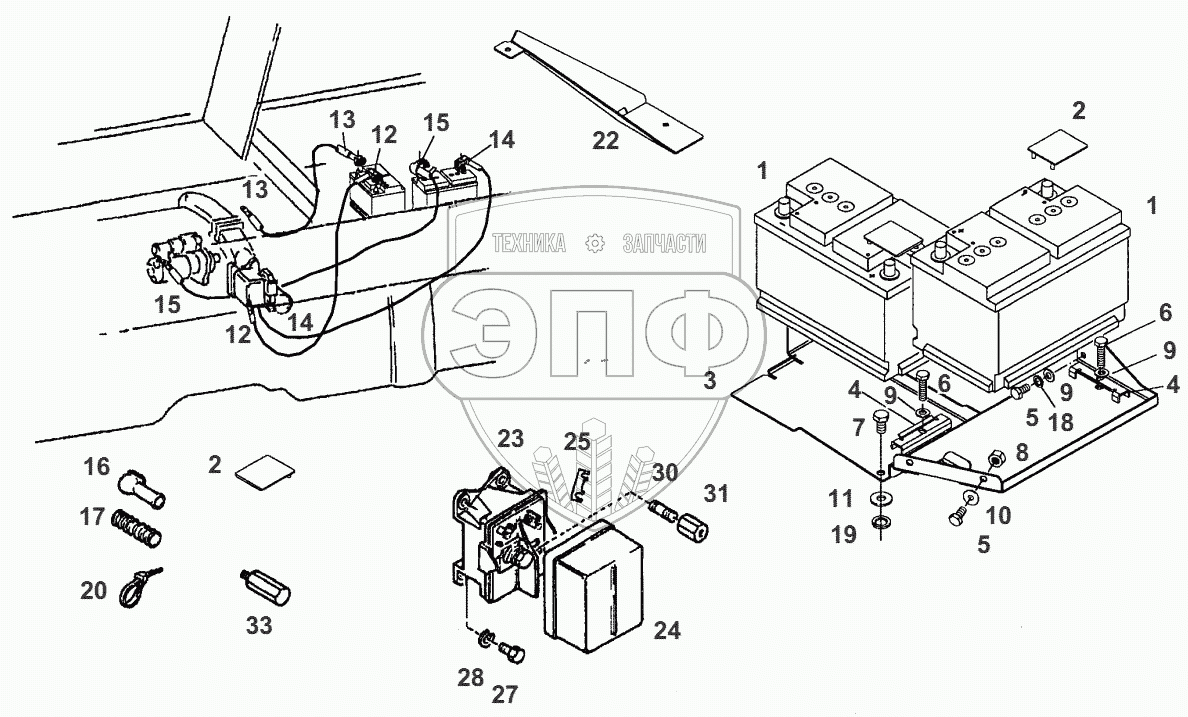 Каталог запасных частей к технике: AGCO Fendt-524 (Xylon) часть3. BATTERY INSTALLATION