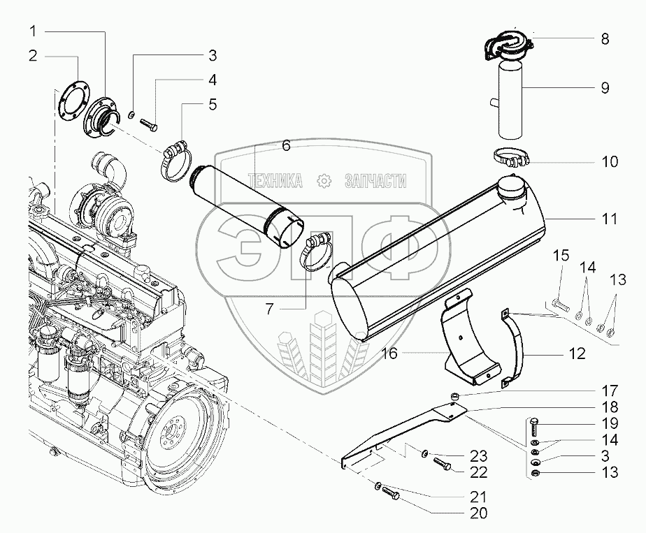 Каталог запасных частей к технике: AGCO Fendt-6300C часть1. Exhaust Silencer
