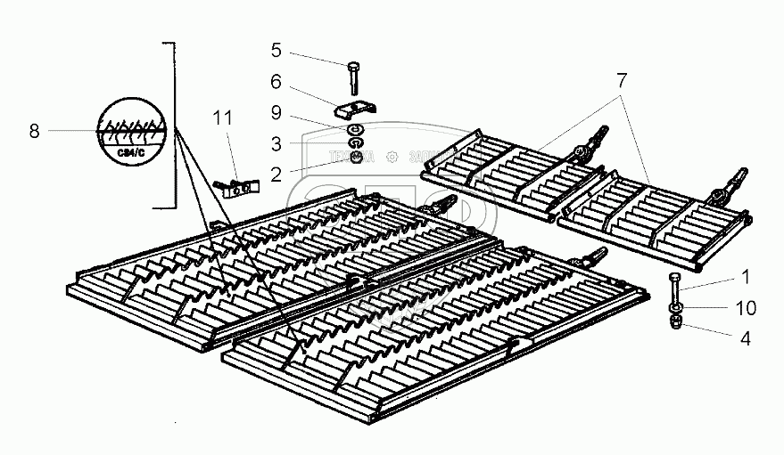 Каталог запасных частей к технике: AGCO Fendt-6300C часть2. Upper Sieve, Adjustable