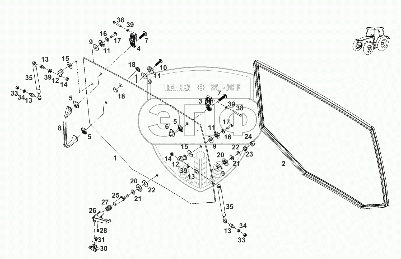 Каталог запасных частей к технике: AGCO Fendt-936 часть1. Кабина-окно заднее