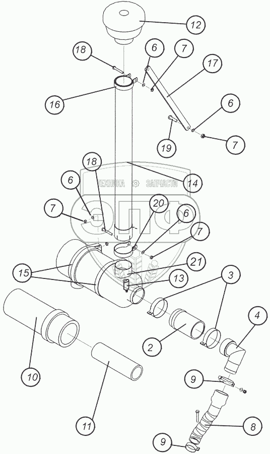 Каталог запасных частей к технике: Агро КУЗБАСС-А ПК-10,6. Воздухоочиститель