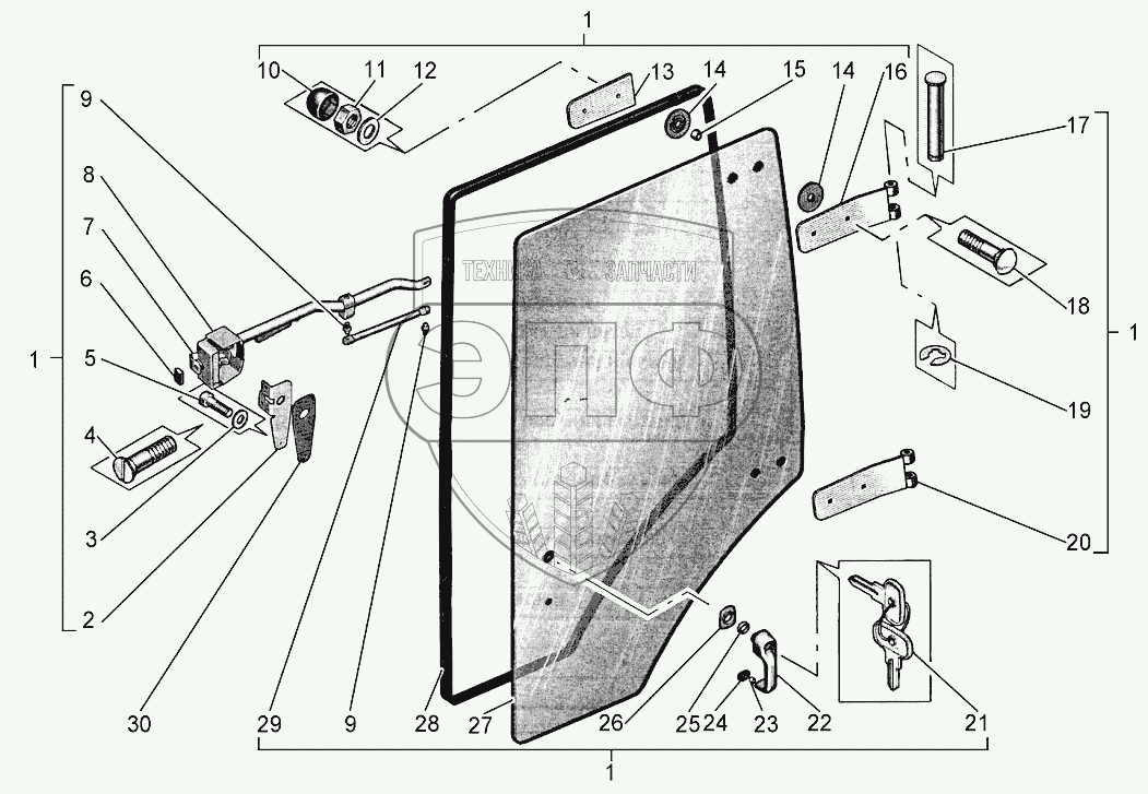 Каталог запасных частей к технике: Агротехмаш АТМ-5280. Установка двери левой