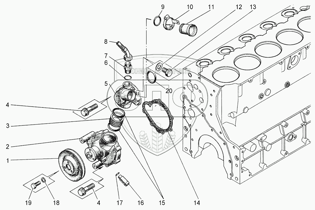 Каталог запасных частей к технике: Агротехмаш АТМ-5280. Установка насоса водяного