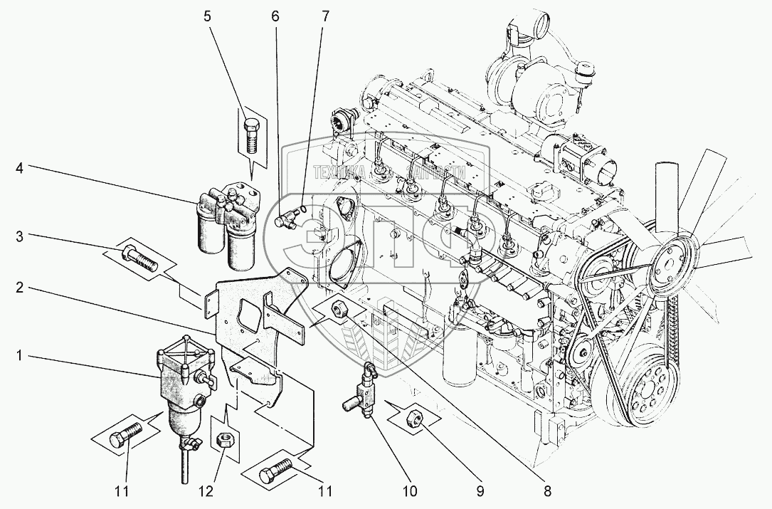 Каталог запасных частей к технике: Агротехмаш АТМ-5280. Установка топливных фильтров