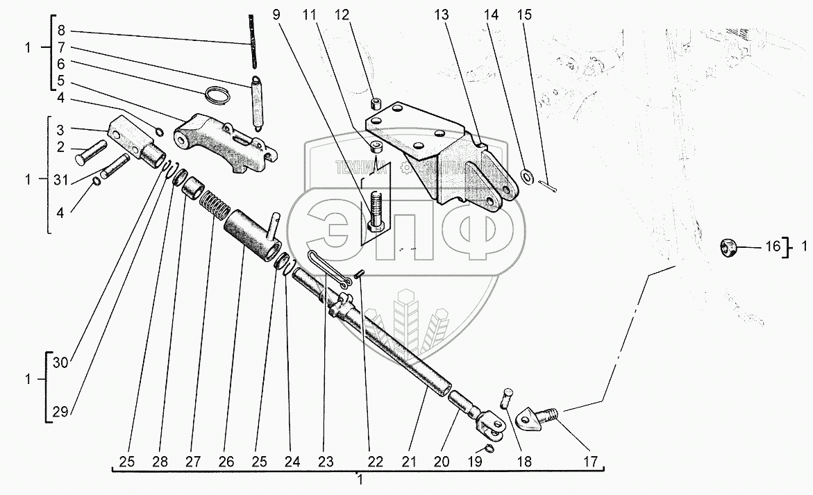 Каталог запасных частей к технике: Агротехмаш АТМ-5280. Устройство навесное заднее