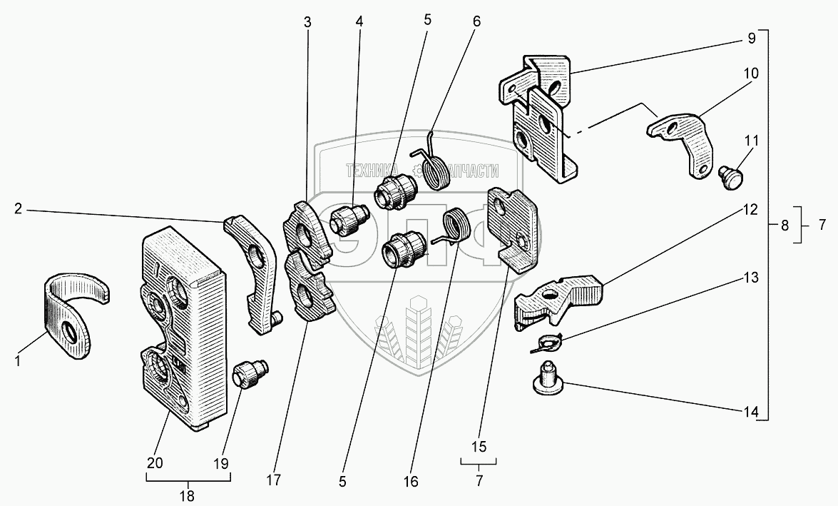 Каталог запасных частей к технике: Агротехмаш АТМ-5280. Замок с поручнем
