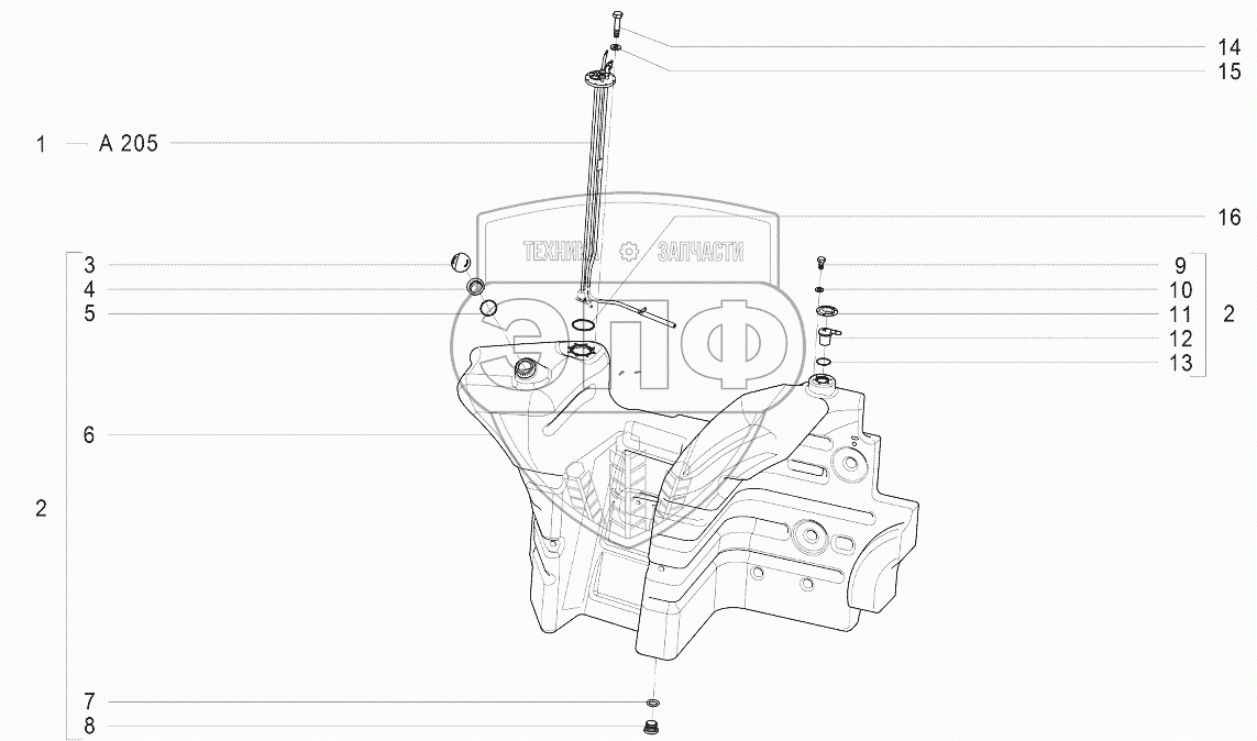 Каталог запасных частей к технике: Агротехмаш АТМ-7360. A202 Бак топливный в сборе