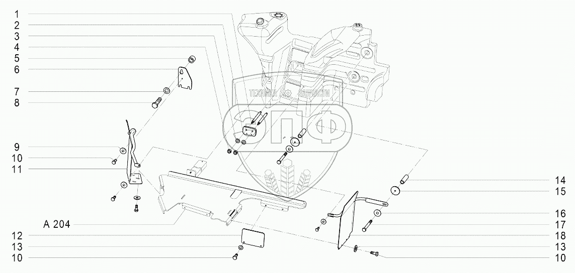 Каталог запасных частей к технике: Агротехмаш АТМ-7360. A203 Кронштейн топливного бака