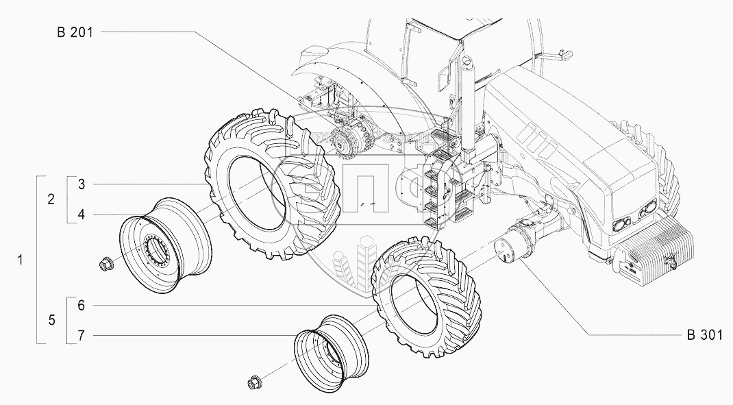 Каталог запасных частей к технике: Агротехмаш АТМ-7360. E201 Комплект колес