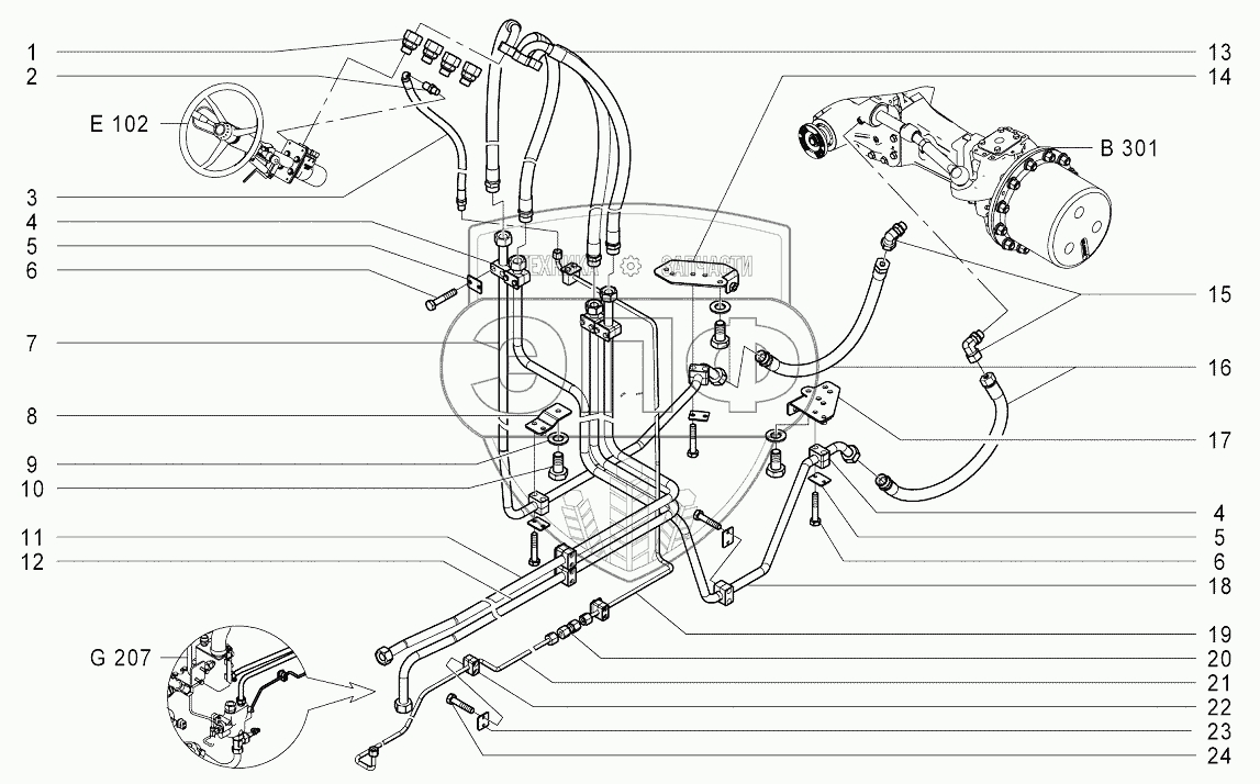 Каталог запасных частей к технике: Агротехмаш АТМ-7360. G209 Гидравлическая система рулевого управления
