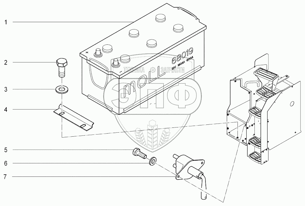 Каталог запасных частей к технике: Агротехмаш АТМ-7360. H402 Установка АКБ