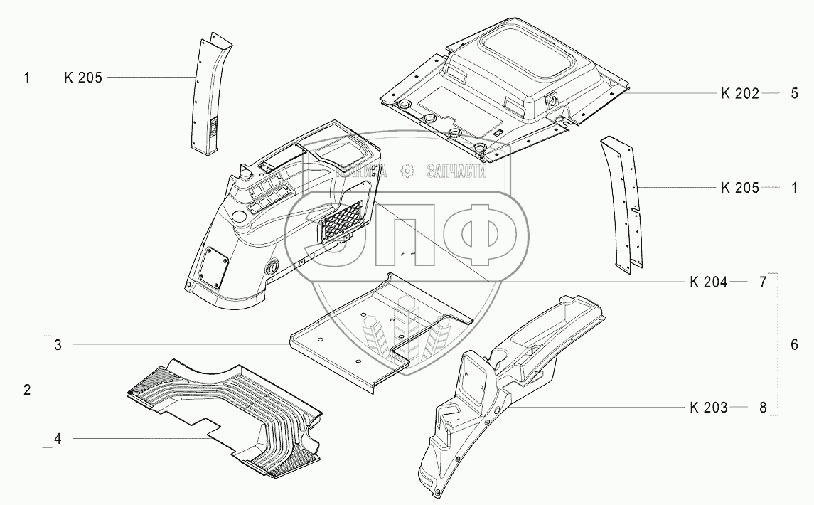 Каталог запасных частей к технике: Агротехмаш АТМ-7360. K201 Облицовка кабины
