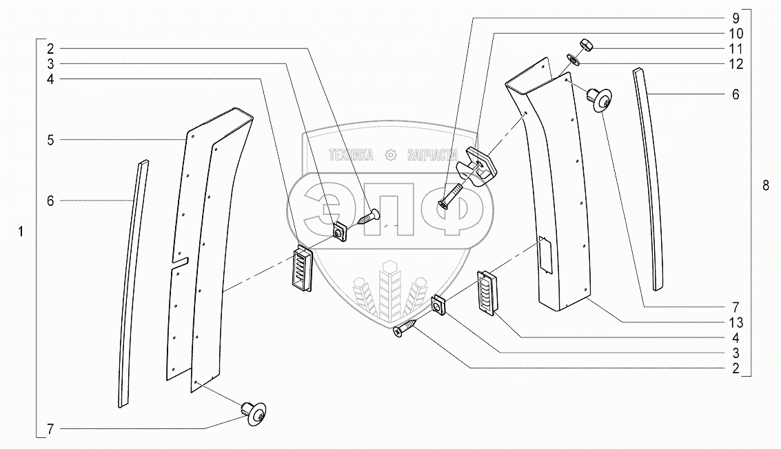 | 8 | 10001997 | Облицовка стойки левой в сборе | Нет на складе | |
