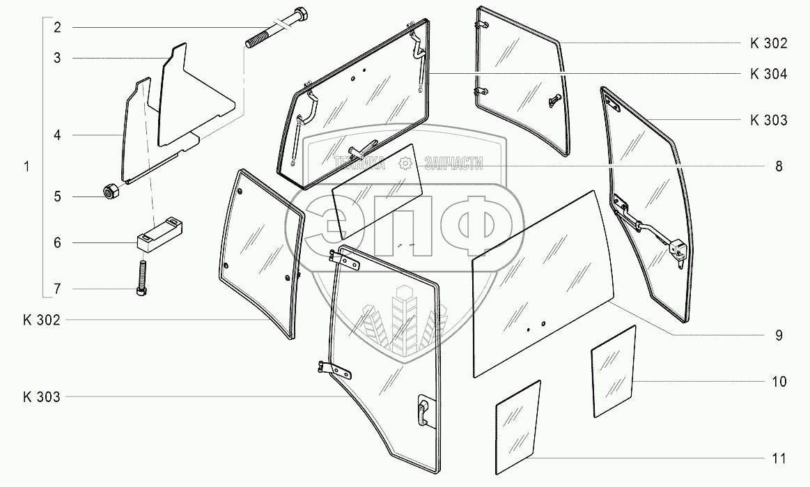 Каталог запасных частей к технике: Агротехмаш АТМ-7360. K301 Остекление кабины
