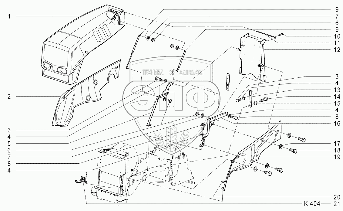Каталог запасных частей к технике: Агротехмаш АТМ-7360. K403 Установка кожухов капота