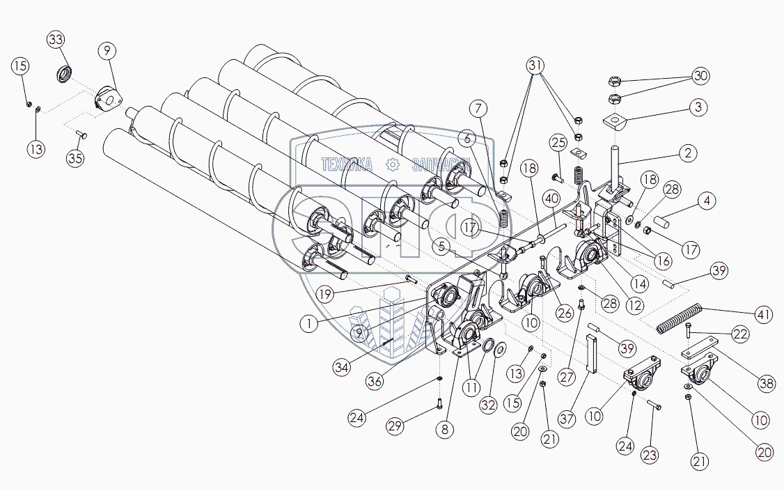 Каталог запасных частей к технике: Amity Wic Harvester 6 row 22s. База очистных валов