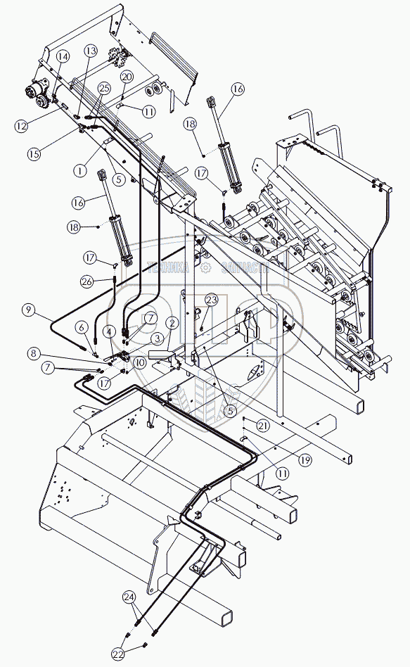 Каталог запасных частей к технике: Amity Wic Harvester 6 row 22s. Гидравлика накопительного бункера