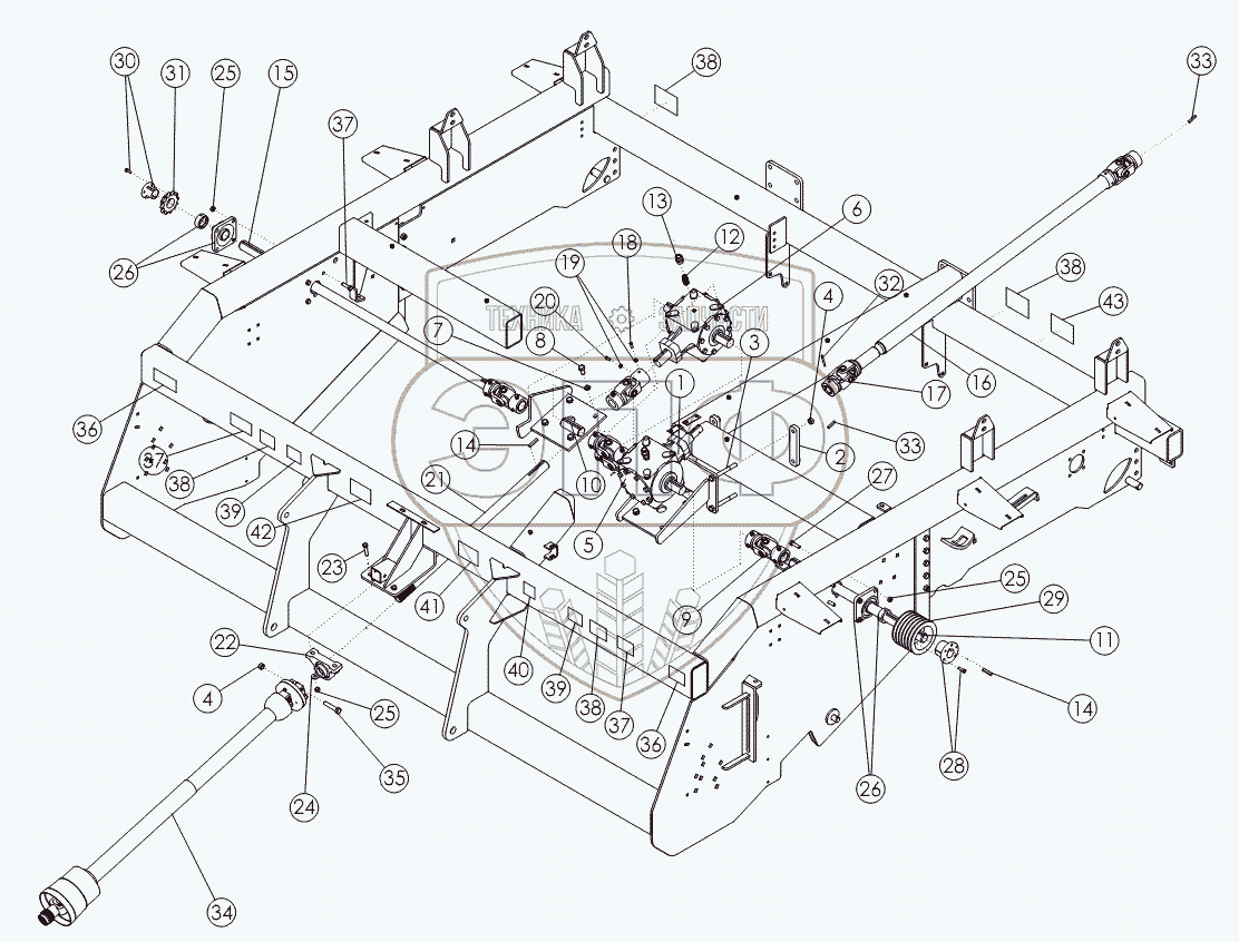 Каталог запасных частей к технике: Amity Wic Harvester 6 row 22s. Центральный привод