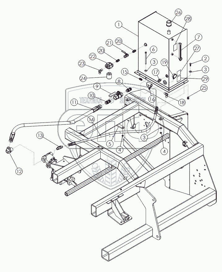 Каталог запасных частей к технике: Amity Wic Harvester 6 row 30s. HYDRAULIC TANK