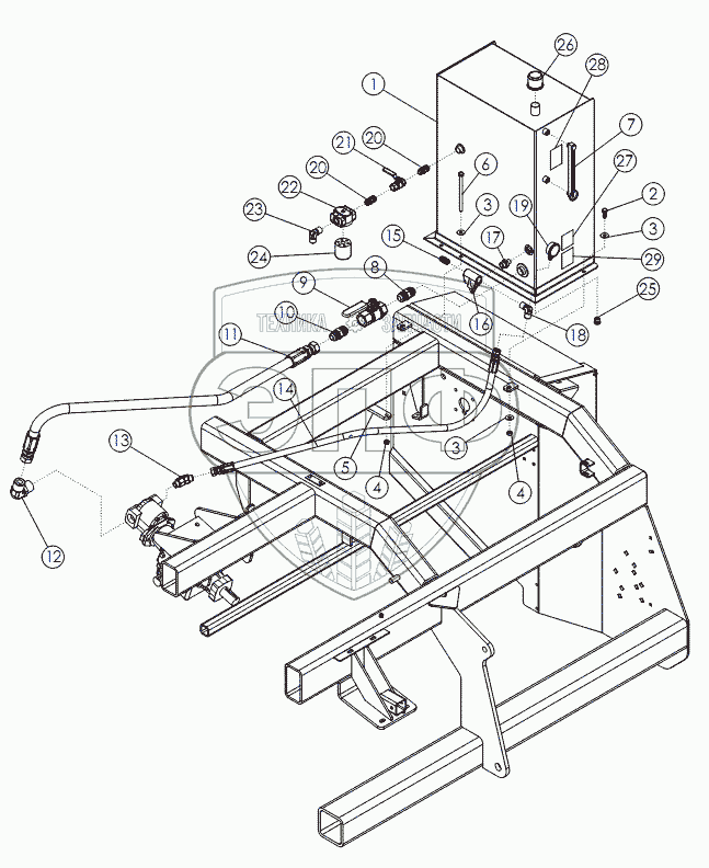 Каталог запасных частей к технике: Amity Wic Harvester 8 row 22s. Гидравлический бак