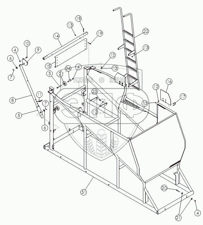 Каталог запасных частей к технике: Amity Wic Harvester 8 row 22s. Накопительный бункер