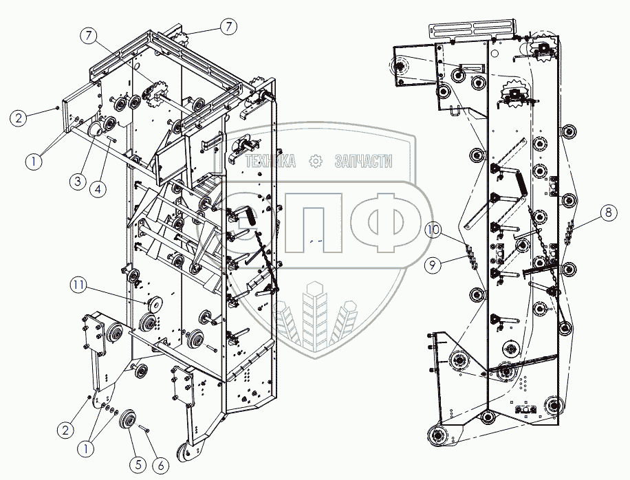 Каталог запасных частей к технике: Amity Wic Harvester 8 row 22s. Ременная цепь