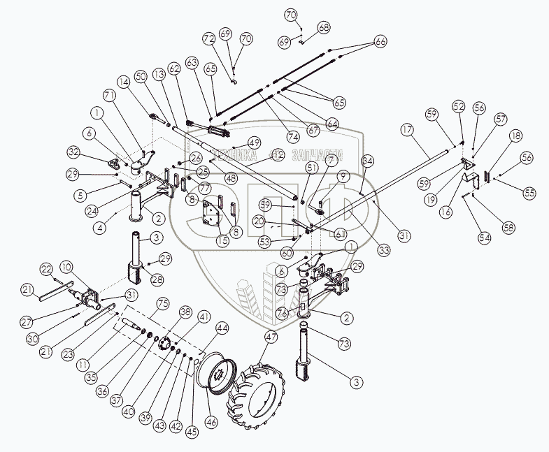 Каталог запасных частей к технике: Amity Wic Harvester 8 row 22s. Управляемые задние стойки