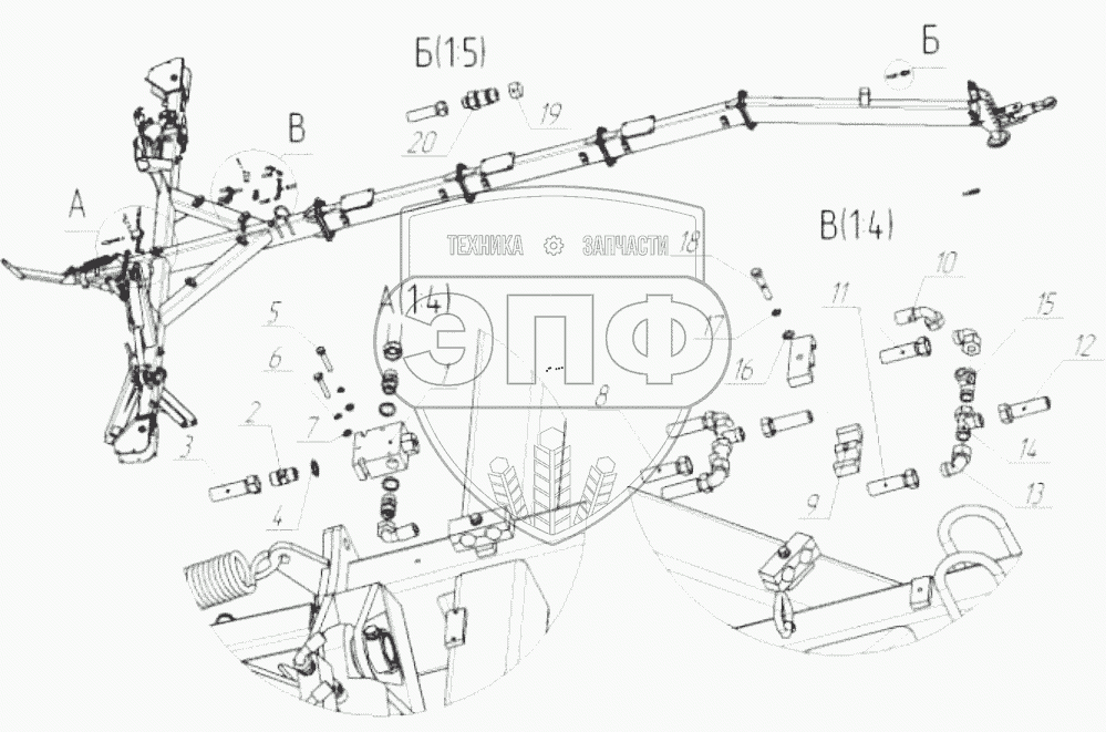 Каталог запасных частей к технике: БЭМЗ Грабли - валкователи ГВ 9,6. Система гидравлическая