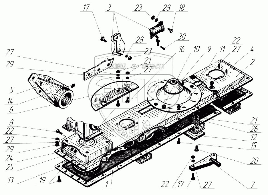 Каталог запасных частей к технике: Бобруйскагромаш КДН-210. Брус режущий КДН04.000