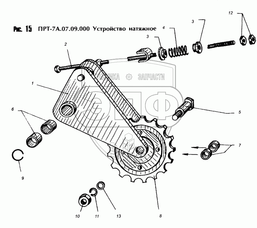 Каталог запасных частей к технике: Бобруйскагромаш КР-Ф-10. Устройство натяжное