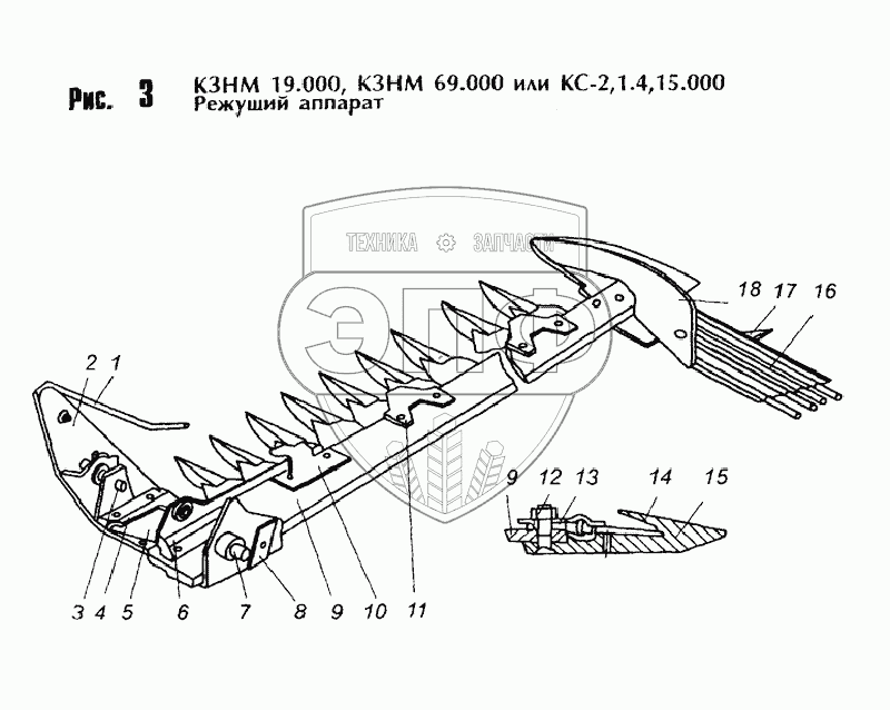 Каталог запасных частей к технике: Бобруйскагромаш КС-Ф-2.1Б-4. Режущий аппарат
