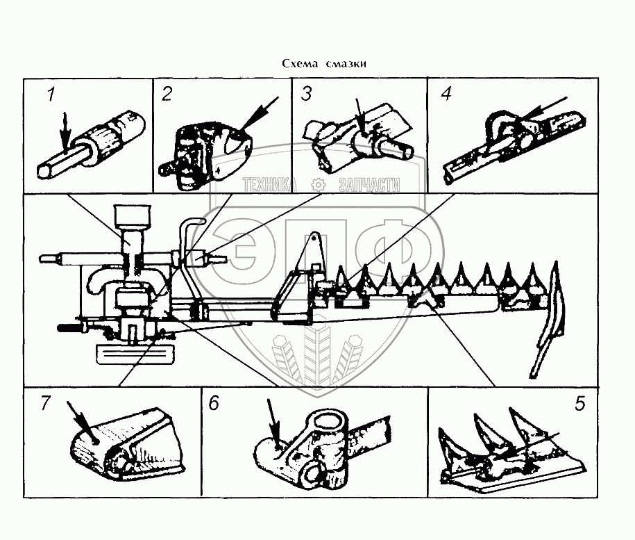 Каталог запасных частей к технике: Бобруйскагромаш КС-Ф-2.1Б-4. Схема смазки