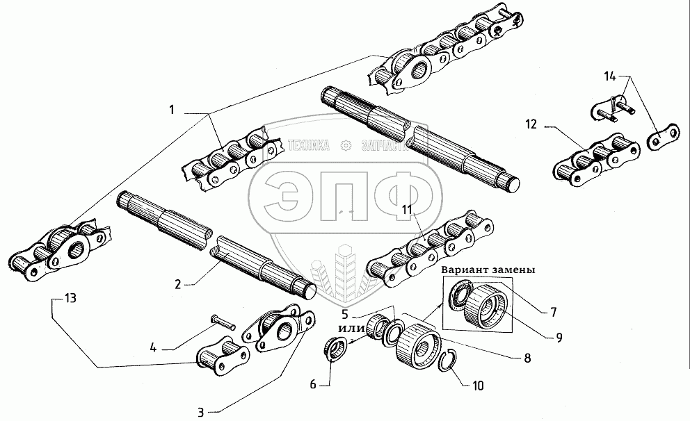 Каталог запасных частей к технике: Бобруйскагромаш ПРФ-110, ПРФ-145. Механизм прессующий