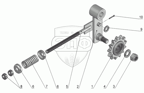 Каталог запасных частей к технике: Бобруйскагромаш ПРЛ-150. Натяжник в сборе