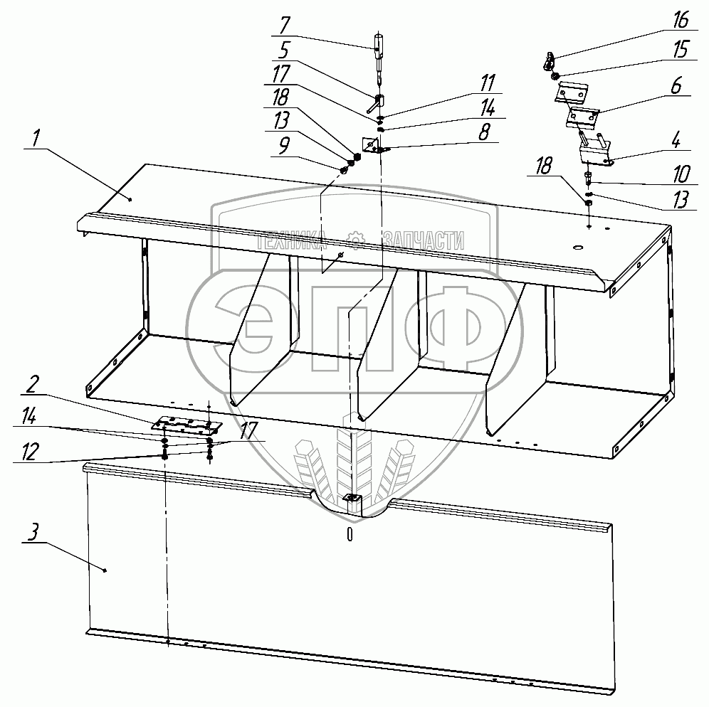 Каталог запасных частей к технике: Бобруйскагромаш ПРМ-150. ПРМ-150.18.00.000 Ящик