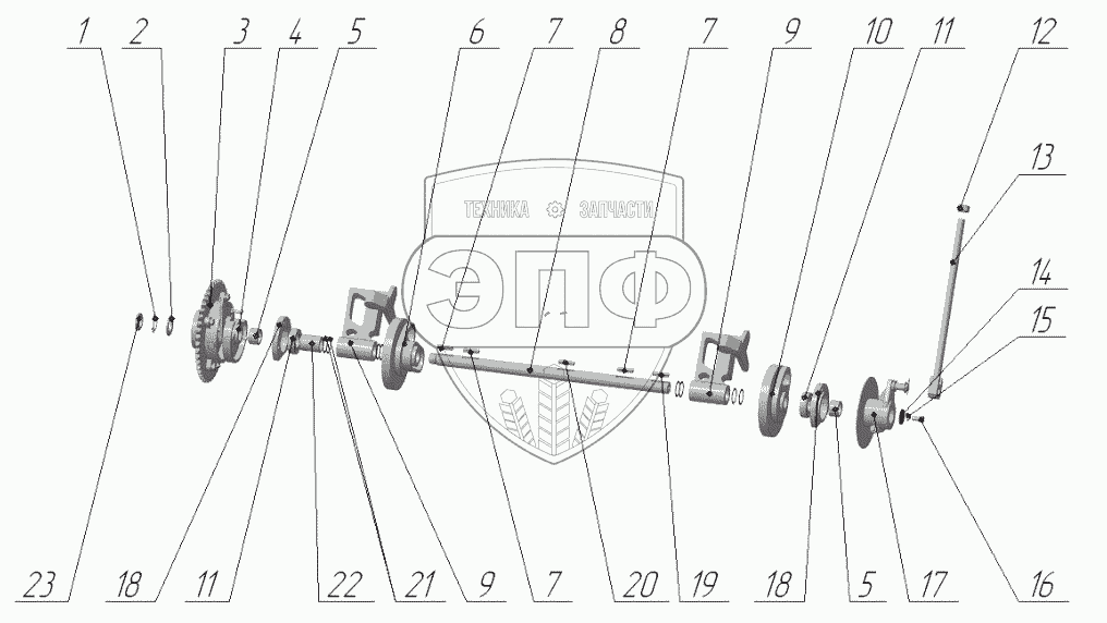 Каталог запасных частей к технике: Бобруйскагромаш ПТ-165М. Вал стола вязального в сборе