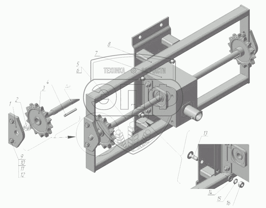 Каталог запасных частей к технике: Бобруйскагромаш РУ-7000. Привод шиберов