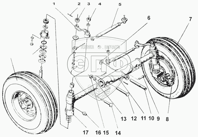 Каталог запасных частей к технике: ДКЗ СПС-4,2А. Передняя ось с колесами